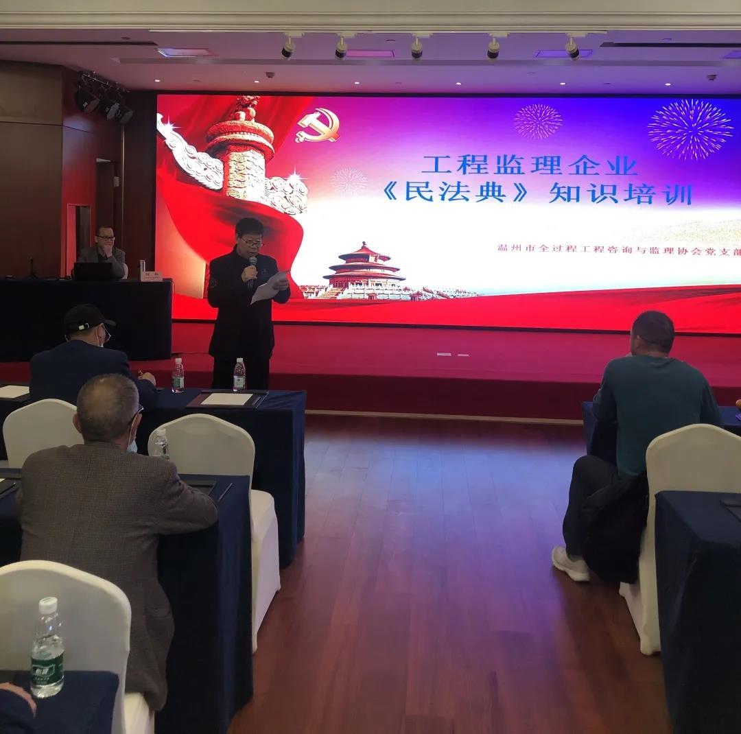 为纪念中国共产党建党100周年,国家全面推进依法治国理念,《民法典》的颁布实施,为国家治理体系现代化提供制度保障,为了及时学习和掌握 法律知识点。2021年3月26日,协会在温州市雪山饭店举办《民法典》专题培训讲座。