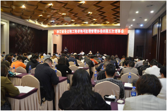 浙江省全过程工程咨询与监理管理协会第四届五次理事会于4月16日下午在杭州召开并圆满结束。参加会议的有全体常务理事、理事共140名代表。中国建设监理协会副秘书长温健;省住房和城乡建设厅建管总站二级调研员吴斌、质量安全监管处柴翔翔出席了会议。