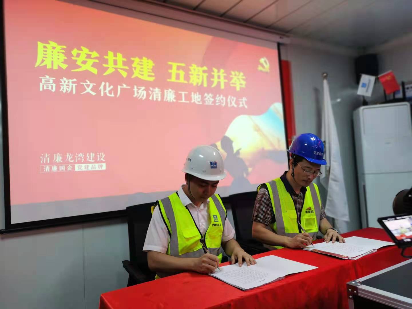 为铸牢“不敢腐、不能腐、不想腐”的思想防线,6月4日上午,温州高新技术产业开发区投资建设开发有限公司董事长黄玉增一行前往温州高新文化广场建设工程项目部考察“清廉工地”建设进度,并召开以“廉安共建 五新并举”为主题的高新文化广场“清廉工地”签约仪式。